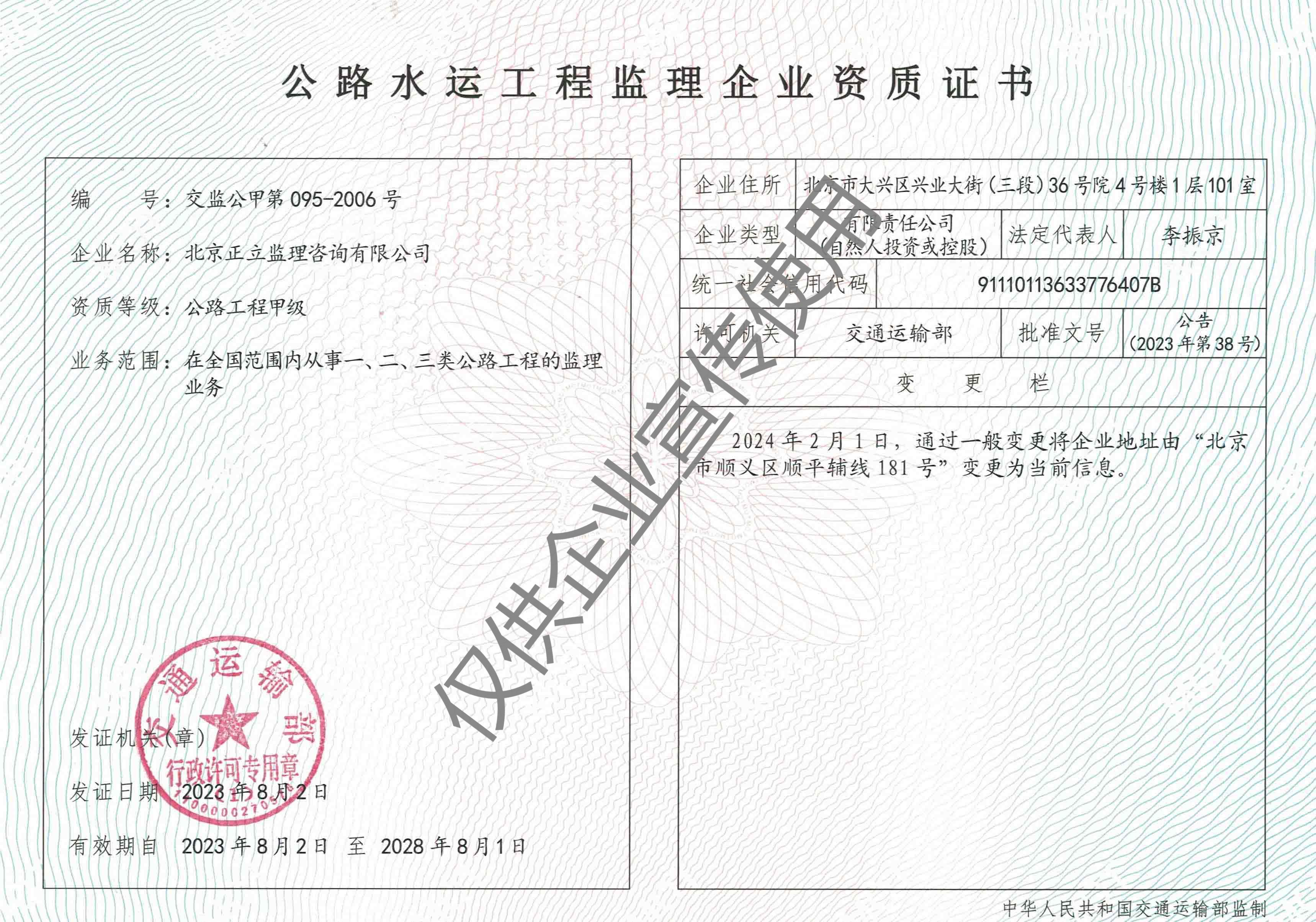 北京正立監(jiān)理咨詢有限公司成立于1998年7月1日,其前身隸屬于北京市公路質(zhì)量監(jiān)理站。具有獨(dú)立法人資格,是獨(dú)立核算、自負(fù)盈虧的經(jīng)濟(jì)實(shí)體。企業(yè)經(jīng)營(yíng)范圍:公路工程監(jiān)理、交通工程監(jiān)理、市政公用工程建設(shè)監(jiān)理、工業(yè)與民用建筑工程監(jiān)理、工程監(jiān)理咨詢、技術(shù)咨詢、技術(shù)培訓(xùn)等。